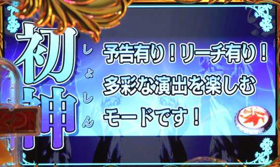 初神(しょしん)モード | 多彩な予告&リーチ演出を楽しめる 賑やかなモード |