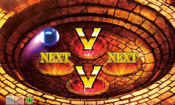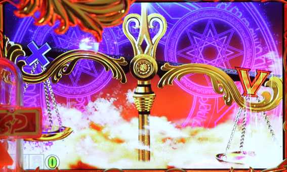 天秤の上で左右に揺れる玉が、最終的に「V」の皿に入れば大当りとなる!