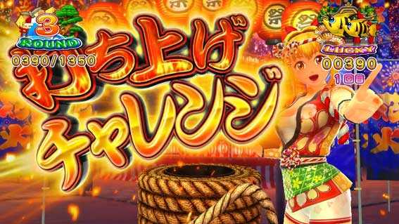 リーチ中に「打ち上げチャレンジ図柄」が停止すると発展。ワリンが花火玉を筒に押し込め、ボタンを押して花火が打ち上がれば大当り。ワリンが花火玉をお尻で押し込めばチャンスアップ!
