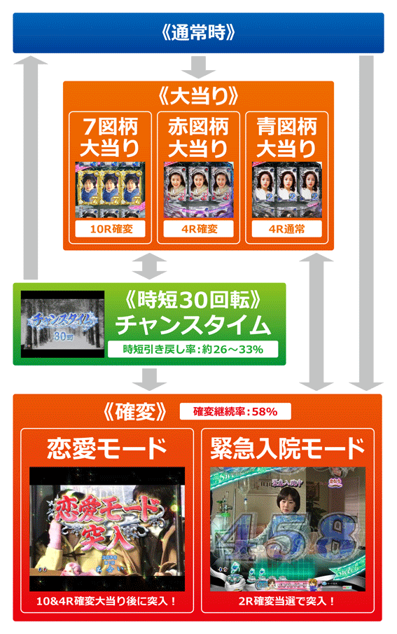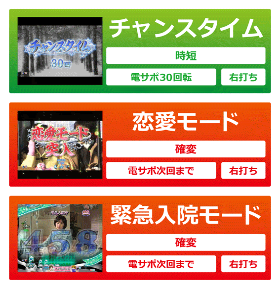 シンプルモード選択時・ 緊急入院モード中の演出法則 |