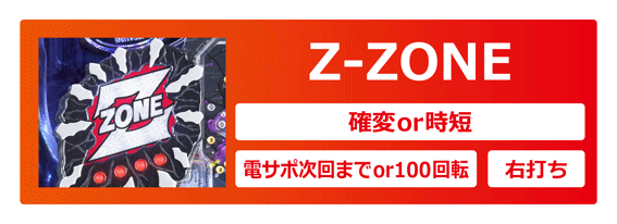確変or時短100回転(※)の電サポモード。演出はシンプルで、セグ色変化先読み演出がメインで展開。赤セグ変化が3回転以上続けば大当りのチャンス、青セグ変化が続くとZ-ZONE終了や2R通常当選のピンチだ。