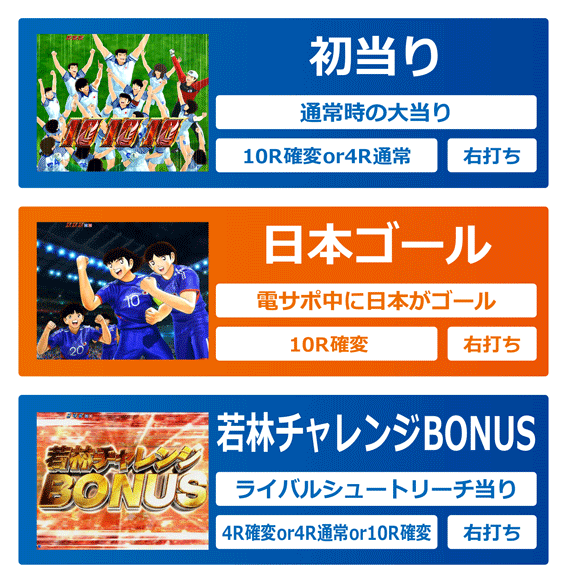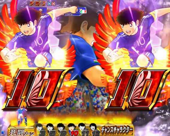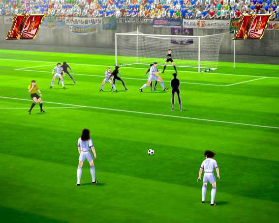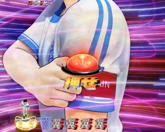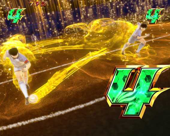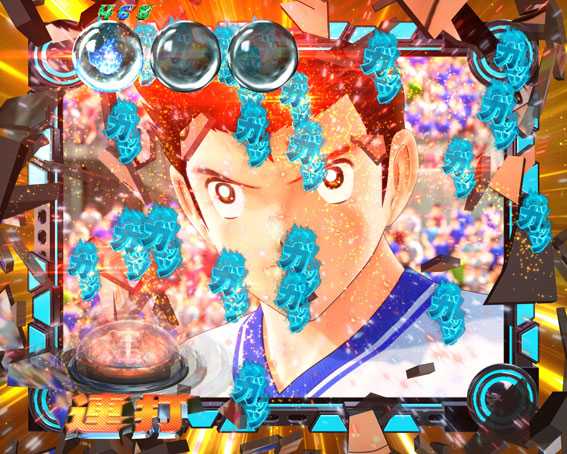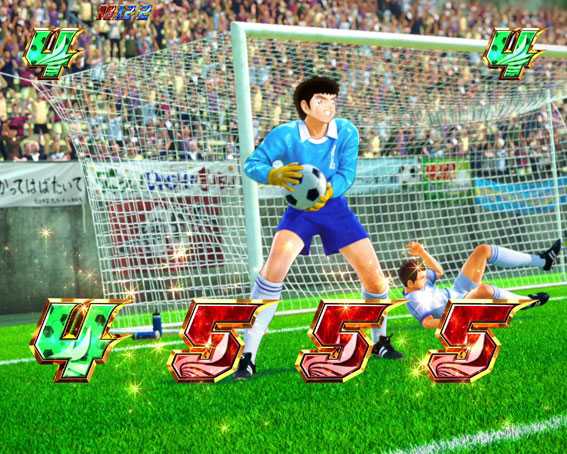 電サポ付きの確変モード。味方図柄(赤図柄)テンパイ後に図柄キャラがゴールを決めれば10R確変。ライバル図柄(青図柄)がテンパイすると確変終了のピンチで、ライバルシュートリーチまで発展後、若林のセーブシーンまで演出が展開すれば若林チャレンジBONUSが発生。確変か否かはラウンド中に決まるぞ。なお、テンパイするライバル図柄は4(※)以外だと守備成功率がアップする。