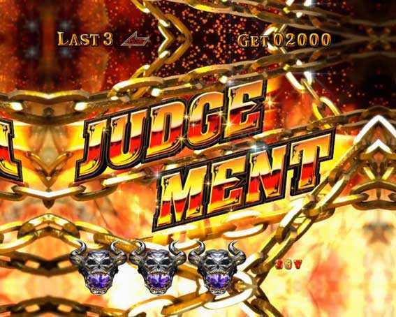 なお、初当りがGGに突入しなかった場合は、1回転限定の「ラストジャッジメント」に突入する。ラストジャッジメントは1/3.71の一発勝負。この1回転で1/3.71の大当りを引き当てることができれば、GG突入濃厚となる。