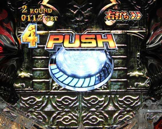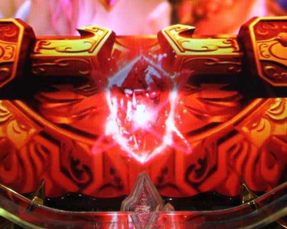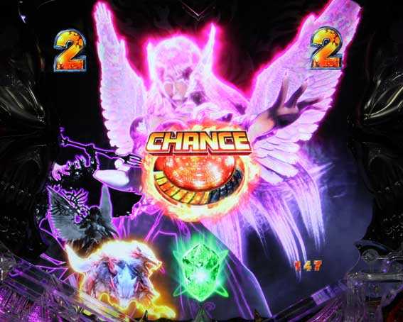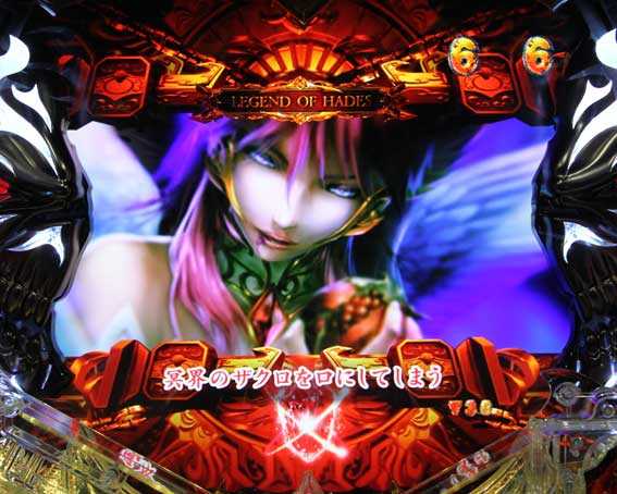 演出中にボタンを連打すると ペルセポネの杖ランプ(始動口の上)の色が変化。 赤までいけばチャンス |
