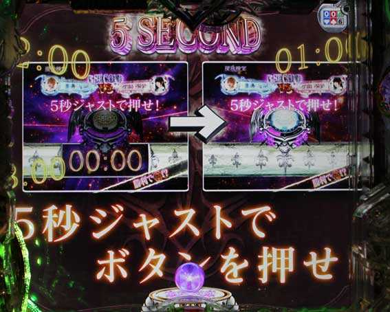 スペックは1種2種混合タイプで、大当り契機は「図柄揃い」「本気(マジ)チャレ」「瞬確(シュンカク)-黒の儀式-」の3つ。「図柄揃い」は説明不要の王道契機で、液晶上に同じ数字が3つ揃うと大当り濃厚だ(1/318.9で発生)。「本気チャレ」は1/956.7で発生する自力チャンス。実際の玉と役モノを使ったガチ抽選を行ない、振子役モノの「UP」と書かれた箇所に玉が入ると1段ずつ上昇。最終的にV入賞すれば大当りとなる。トータルV入賞率は約1/4だ。「瞬確-黒の儀式-」は電チューのロング開放のことで、1/2980.9で発生。ブラックアウトから右打ちを指示されるので、右打ちして瞬確待機状態にすればOKだ。電チュー入賞時のトータル大当り確率は約1/7.1にアップ&最大4回の抽選を受けられるので約45%の割合で大当りをゲットできる。