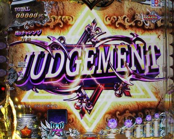 ジャッジメントが開始するとルーレット演出で繰り出す攻撃を決定し、攻撃が強力なほどDirect V(大当り)のチャンスとなる。攻撃のチャンスは3回で、それで当たらなければDICEチャレンジに突入する。