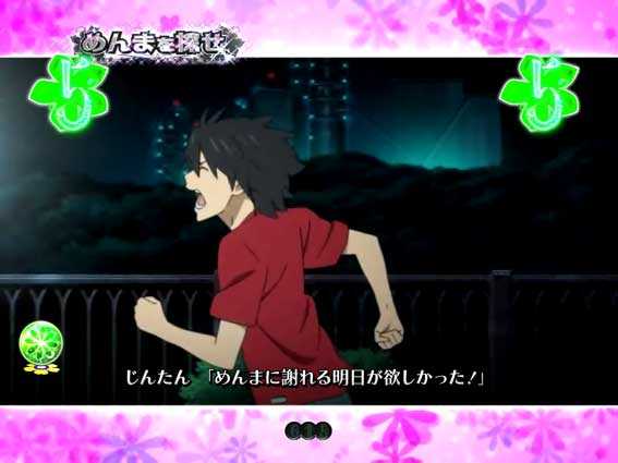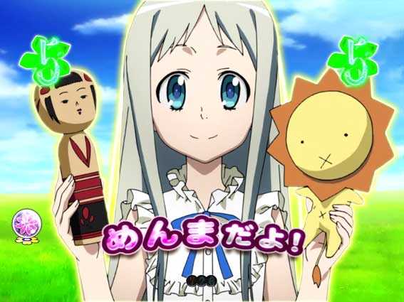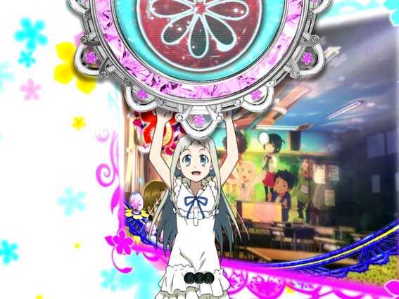 感涙必至の大人気アニメ「あの花」が、ついにパチンコになって登場! 本機『Pあの日見た花の名前を僕達はまだ知らない。』は、6段階設定を搭載した1種2種混合機。初当り獲得後は、時短1回+残保留4回分の電チュー保留を消化できる「かくれんぼちゃんす」(大当り期待度50%オーバー)か、時短7回+残保留4回分の電チュー保留を消化できる「龍勢RUSH」(大当り期待度約80%)に突入する。時短中(右打ち)は、約1/7.45~7.33という高確率で大当りに繋がり、大当りすれば龍勢RUSH突入濃厚! 以降は約80%で大当りがループする仕様だ。