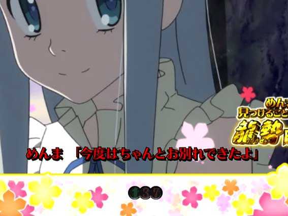 図柄揃いによる初当りの90%で突入。時短1回転+保留4回転の計5回転分を1回の演出として見せる。最終的にめんまを発見できれば大当り+龍勢RUSHに突入。