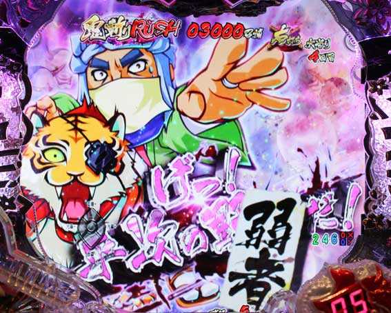初回3・7図柄揃い後や、電チュー入賞時に当たると突入する電サポ6回転の時短モード。消化後は残保留演出の「大勝負ゾーン」に突入し、鬼斬りRUSHと大勝負ゾーンを合算した場合の継続率は約81%となる。