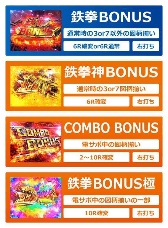 前兆演出 | ・保留変化予告 (赤・赤鉄拳・金) ・前兆ゾーン |