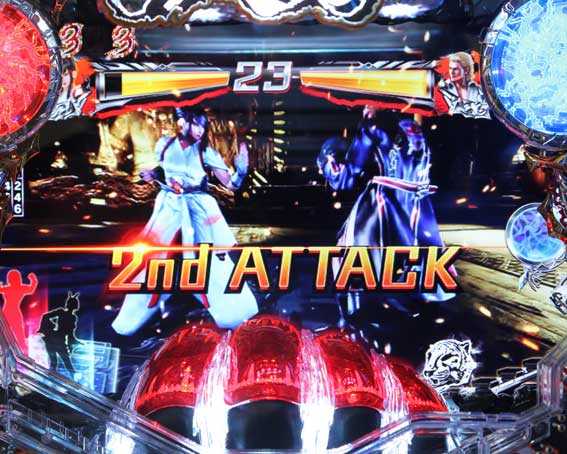 大人気格闘ゲームとのタイアップ第3弾が登場。スペックは大当り確率1/199.8、通常時のST突入率50%、電サポ中のST突入率100%のV-ST機。大当り終了後は確変でも時短でも、100回の電サポに突入する。
