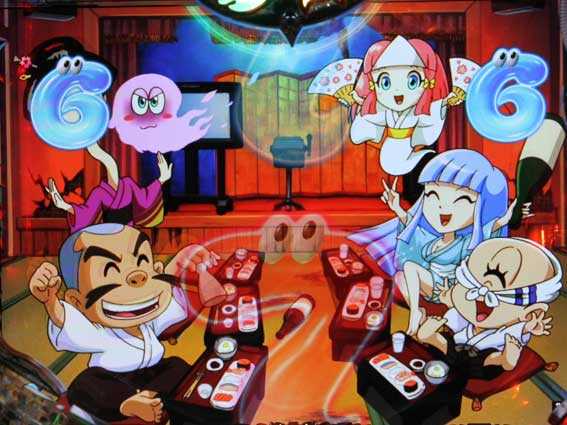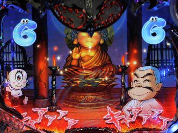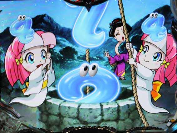 先読み演出 | ・保留変化予告(提灯おばけ・おまつの頭) ・怪ランプ予告(赤) ・おばけ図柄停止 ・輪廻役物デヤー予告 ・背景チェンジ(おばけ墓場 怪) |