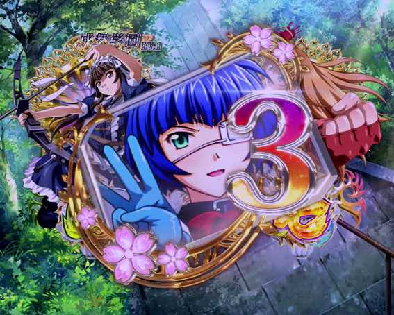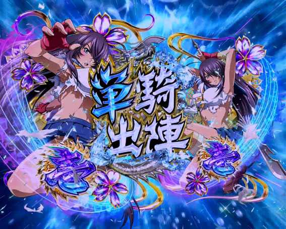 電サポの有無を問わず、一騎当千図柄が止まると発生する4Ror8Ror10Rのランクアップ式確変大当り。ラウンド開始時に選択されるキャラによって10R期待度が変わるぞ。