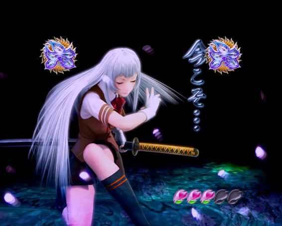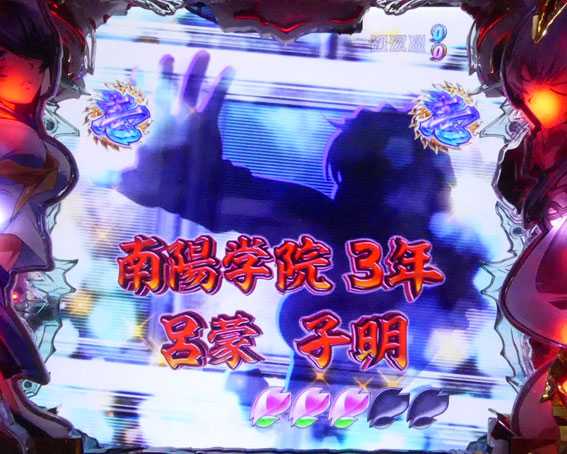 図柄揃い直後は、液晶左右の関羽&趙雲役モノから斬撃が発生して上位図柄揃いに昇格する可能性あり!