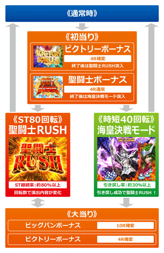 チャンスアップ演出が豊富で、最終的に青銅聖闘士がバトルで勝利すれば大当りとなる。