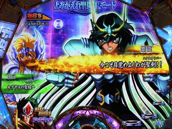 発生時点でかなりアツいバトルリーチ。聖矢が強攻撃、レバーの色が金orレインボー、激レバー出現などはプレミアム!