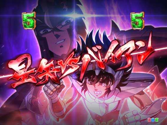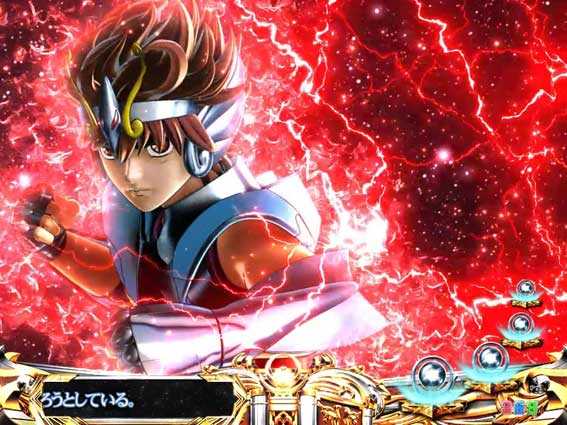 十二宮ZONE経由でのみ発展する特殊リーチ。聖矢がサガを撃破できれば大当りとなる。