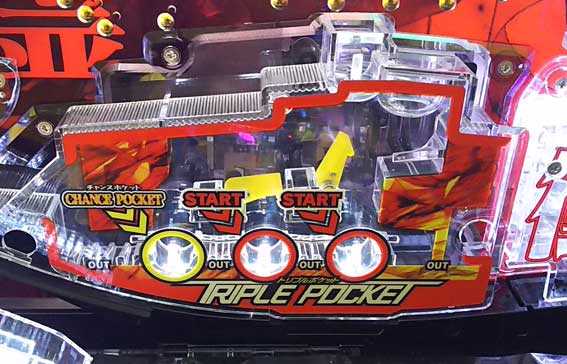 本機は全大当り後に時短12or100回(プラス残保留4個)の「SUPER亜人RUSH」へ突入するミドルスペックで、時短中は実質大当り確率が約1/9.9にアップ。時短100回なら次回大当りが濃厚、時短12回でも約81.4%の高継続仕様となっている。通常時はヘソに入った玉の入賞先を振り分けるギミック「トリプルポケット」に注目。一番左に入ると電チュー開放のチャンスで、電チュー開放時は右打ちでRUSH中と同等の抽選が受けられるぞ。