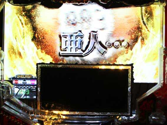 10Rの時短付き大当りで、終了後は12回転のSUPER亜人RUSHに突入。
