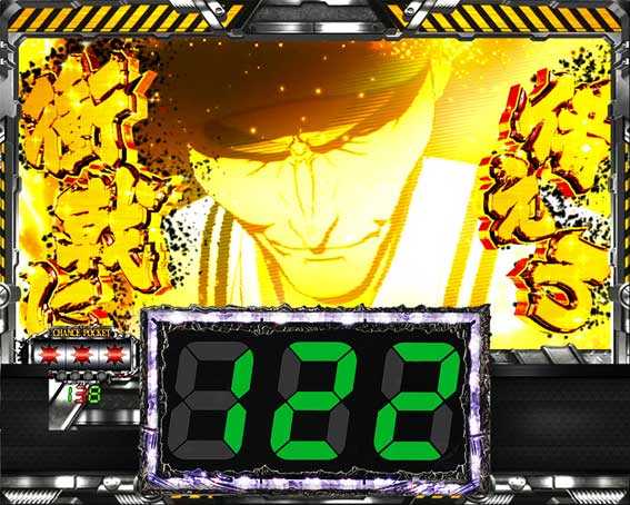 継続率約82%の右打ち連チャンモード。時短回数は12or100回転(+残保留4個)で、後者なら実質次回大当り濃厚だ。専用リーチが複数用意されており、当たればモード継続となる。