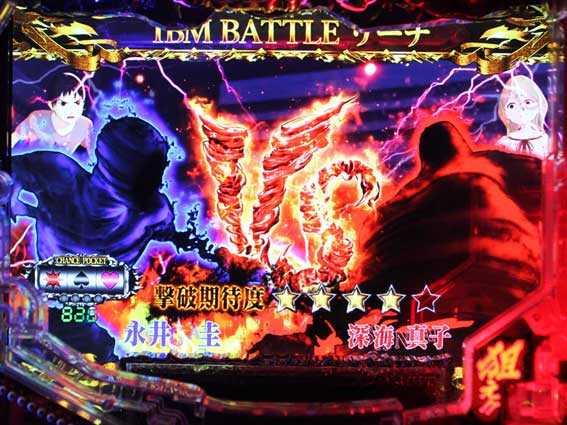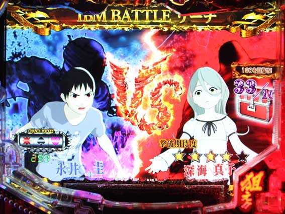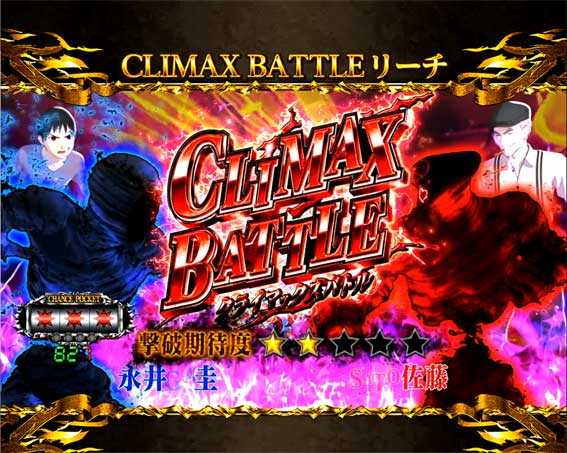 図柄テンパイ後に亜人ロゴが落下して敵キャラクターが登場すると発生。敵キャラの種類や攻防パターンなどで信頼度が変わり、永井が先制攻撃をしたり敵の攻撃を耐えるなどの演出発生で勝利となる。