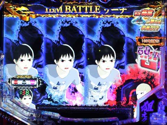 通常時に図柄が揃うと亜人BONUSが発生し、終了後はSUPER亜人RUSHに突入。時短回数は12回or100回で、後者なら実質次回大当り濃厚だ。
