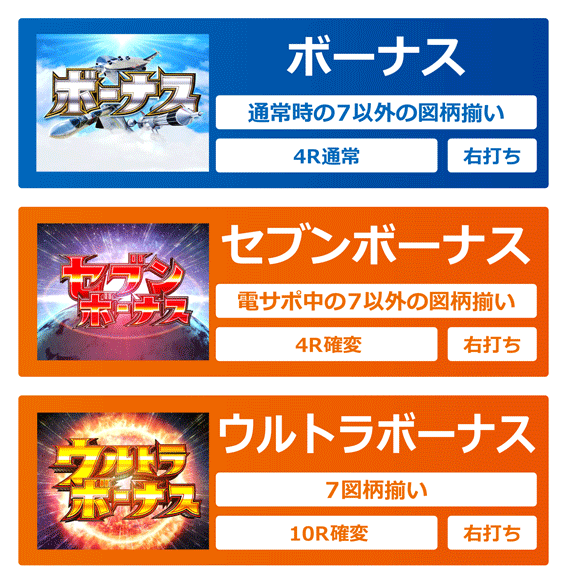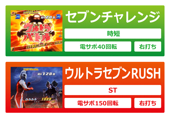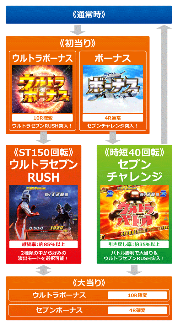 ※1…確変突入はV入賞が条件。ウルトラセブンRUSH中のヘソ大当りは時短に転落する可能性あり