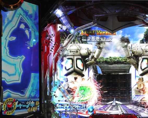 アイスラッガーゾーン突入煽り予告で サイド液晶に積み重なるパネルが赤色 |