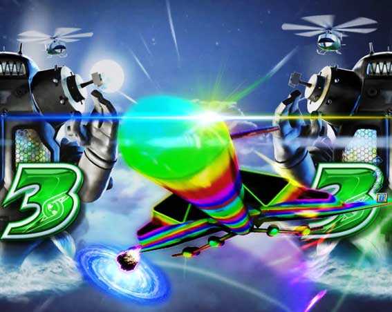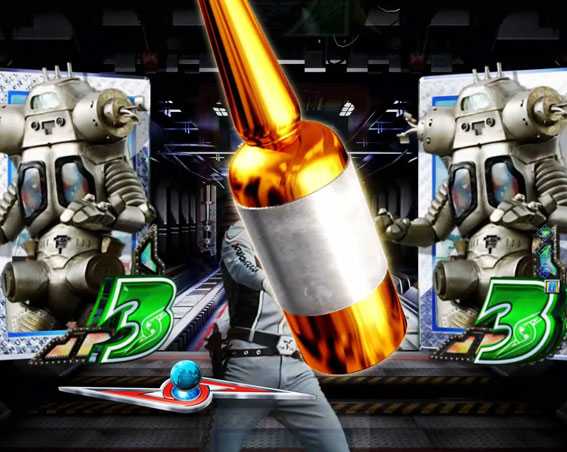 UFOスベリ連続予告で 左右図柄に光線が照射される |