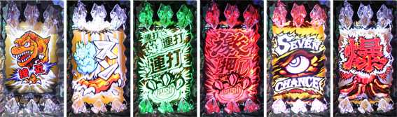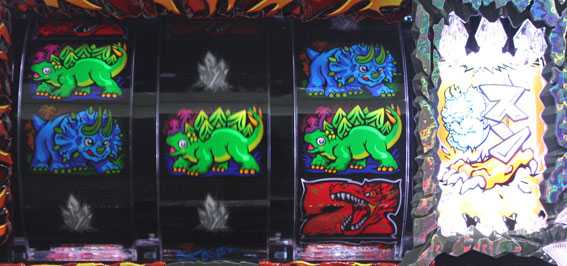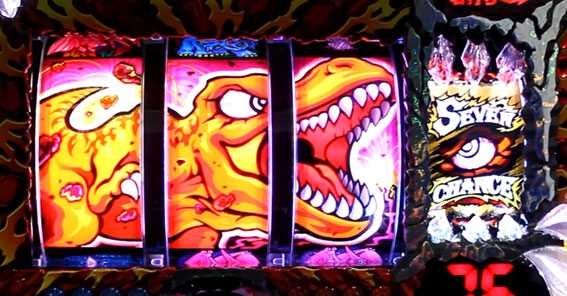 通常時の発生は通常大当りで、右打ち中の発生は確変大当りとなる。揃う図柄の種類によりラウンド数が異なり、ダブル7揃いなら8R、シングル7揃いなら6R、恐竜図柄揃いなら4Rだ。