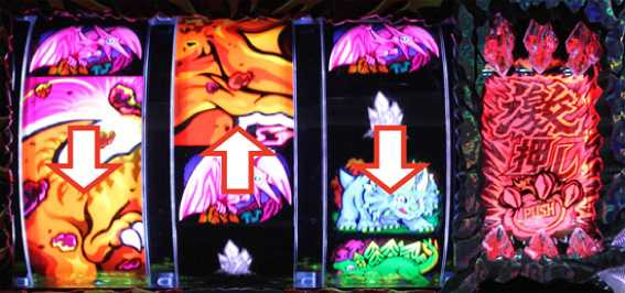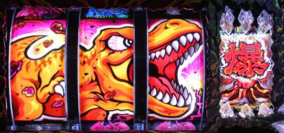 ドラム右のWILDリールに「爆」の文字が出現してドラムが逆回転すると発展。大当りの大チャンス!