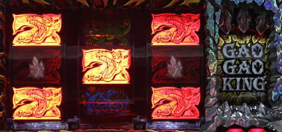 ガオガオキングシリーズの第3弾が2スペック同時デビュー! ライトミドルタイプの『Pガオガオキング3』は、ヘソ入賞時の確変突入率20%、電チュー入賞時の確変突入率100%のV-ST機。初当りで10R確変を引くか、通常大当り後の77回の時短中に大当りを引き戻せれば、ST100回の「HYPER G-RUSH」に突入する。HYPER G-RUSH継続率は約80%だ。