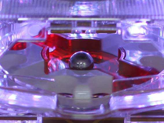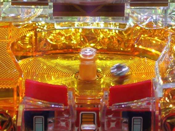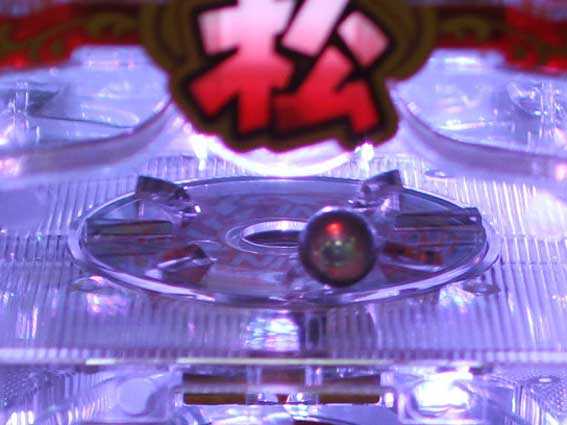 中央の穴に入るとSPルートで、約1/2で下段クルーンへ。回転体に玉が弾かれるとノーマルルート。