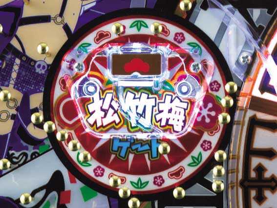 大当り獲得後に発生するラウンド数決定演出。役モノ周囲のランプが点灯し、梅で停止すると実質2R、竹だと実質4R、松なら実質9Rとなる。点灯パターンがいつもと違えば実質9Rの大チャンス。シナリオモードではキャラによって演出や特徴が変化し、トト子なら実質9R濃厚だ。