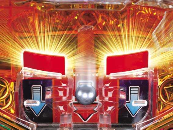 セグに33・77などの数字停止で発生する3Ror5Ror10R大当り。1R目は羽根が複数回開放するが、役モノ内の賞球数が1個のため出玉は増えず、最下部のアタッカーが開放する2R目以降で出玉(実質2Ror4Ror9R)を獲得する。