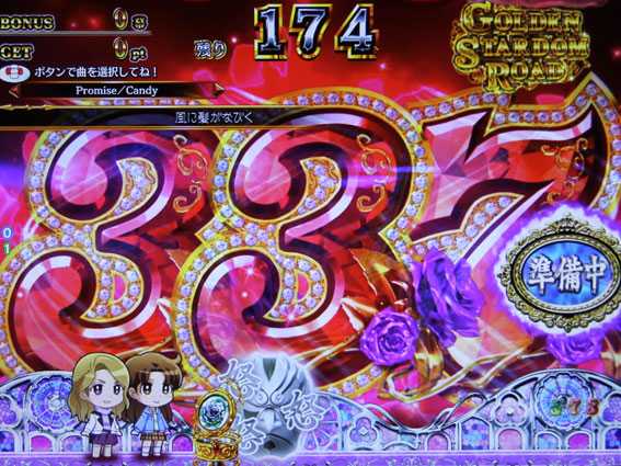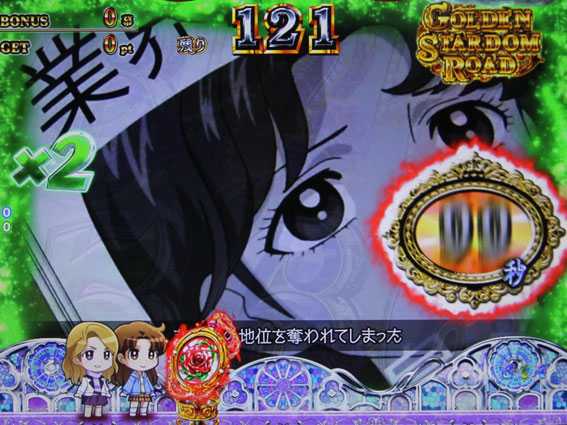 終了後はST200回転のGOLDEN STARDOM ROADに突入。なお、電サポ中に紫のバラMemorialリーチで当たった場合は大当り名称が「紫のバラMemorial BONUS」になる。