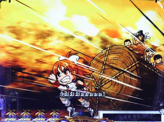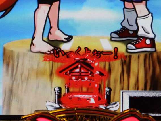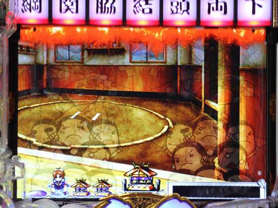 特定条件を達成すると選べるようになる、いわゆる一発告知モード。液晶下部の制限時間が0になる前にちゃんこ鍋が爆発すれば大横綱ロード突入となる。
