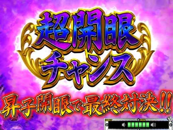 超開眼チャンスは最大31回転の電サポモードで、主人公が開眼すれば師弟対決リーチに発展し、勝利すると天昇チャンスゲット。なお、超開眼チャンスへは通常時にいきなり突入する可能性もある。