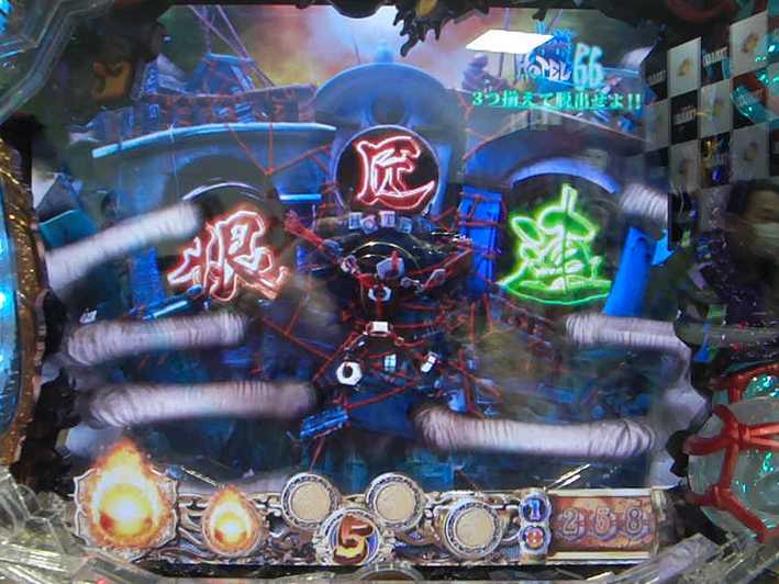 初回大当りの確変突入率は50%。図柄揃い直後の昇格演出で6図柄揃いに変化すれば確変&ROKUROKU IMPACT突入、演出失敗で六怪勝負突入だ。六怪勝負は6回転の時短演出で、6回発生する妖怪バトルで勝つたびに時短回数が上乗せされ、かつ終了後は66封印モードに突入。1度も勝てなければ時短終了&通常時に戻る。