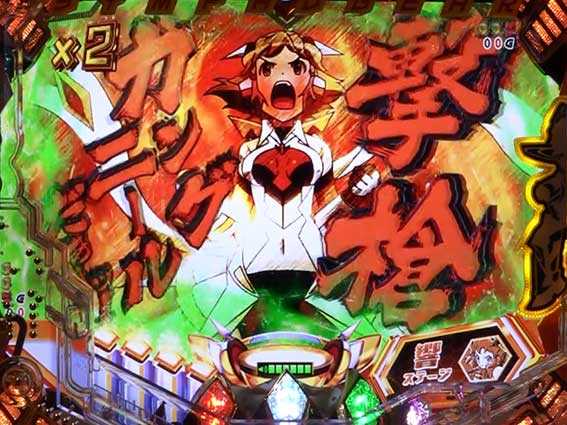 右打ちモード中に発生するランクアップ式の大当り。選択キャラによってラウンド決定演出は異なるが、10R獲得率は80%と高め。終了後はシンフォギアチャンスGXに突入する。
