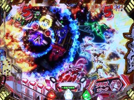 保留5個分をまとめて消化するのでアツい。保留チャージ中のオーラの色に注目。