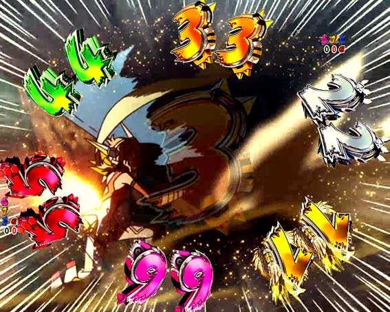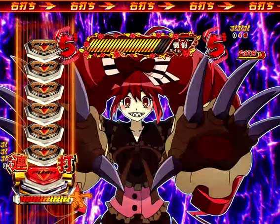 ボタン連打で敵を倒せば大当り。攻撃の種類やボタンの色に注目。
