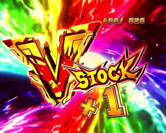 リザルト画面後に絶唱が発生するとV-STOCK獲得で、時短99回転=次回大当り濃厚となる。