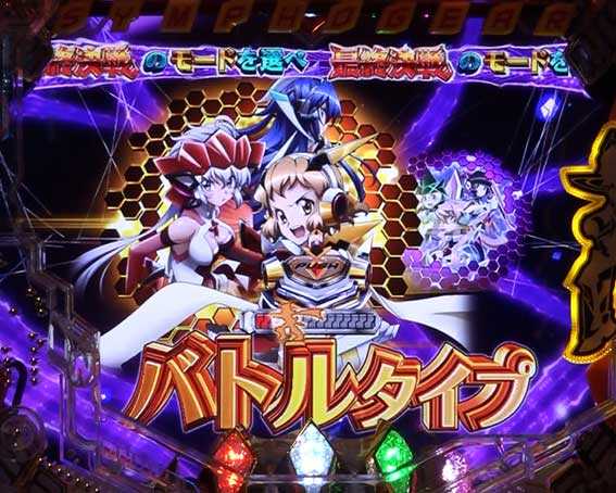 初回10R大当り、または最終決戦中に大当りすると突入。時短は7回or11回or99回の3種類があり、トータル継続率は約82%だ。なお、液晶演出は選択キャラによって変化する。