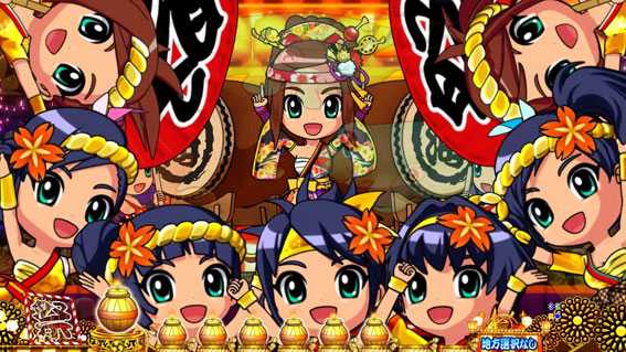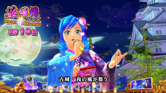 獲得した出玉数に応じて画面が変わるが、ここでクジラブリーが出現すれば返り咲け華唱ゾーン中の大当り発生、サム出現なら10R大当り濃厚となる。