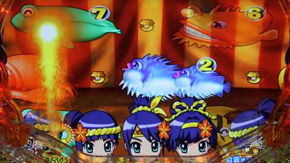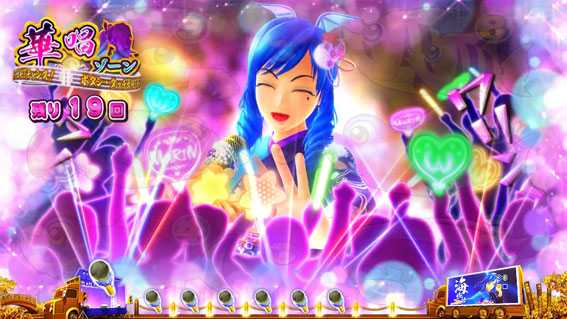 リーチ後にマリン、ウリン、ワリンの3人が登場すると発生する高信頼度演出。金衣装出現、バーサライター作動、レインボーパールボタン出現などは10R大当り濃厚だ!