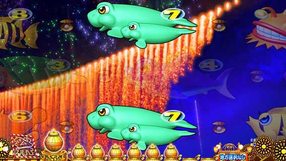 海シリーズの代名詞的なリーチ後予告。プレミアパターンも多数用意されている。