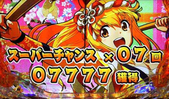 テンパイ煽り失敗後、バラケ目ではなくチャンス目が停止した場合は超激アツ。液晶暗転を経てバーサライターが作動し逆転の10R大当り当選となる!