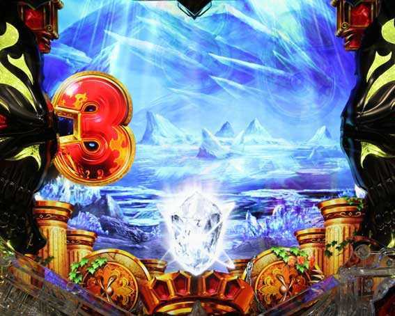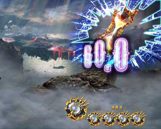 電サポ100回転の時短モード。HADES WORLDと同様、大当り発生率は1/61.3となっており、継続率は約82%とかなり高い。なお液晶演出については、前半60回転はGOD GAME専用演出、後半40回転はHADES WORLD中と同じ演出が展開する。