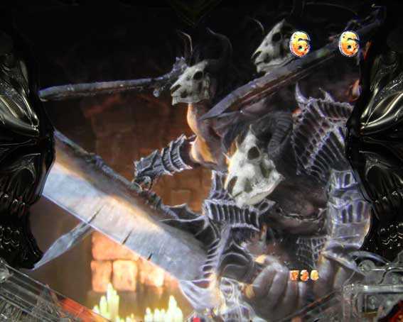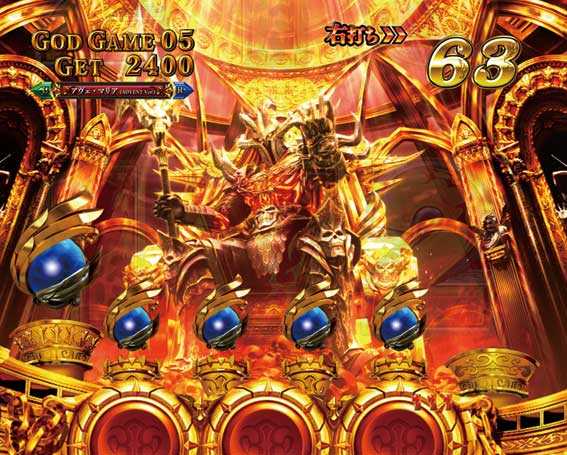 初回大当りの大半が、終了後はこのHADES WORLDに突入。電サポ40回転の時短モードだが大当り発生率は1/61.3のため、ST機のような感覚で楽しめる。40回転+残保留4個で大当りを引き戻せばGOD GAME突入だ。